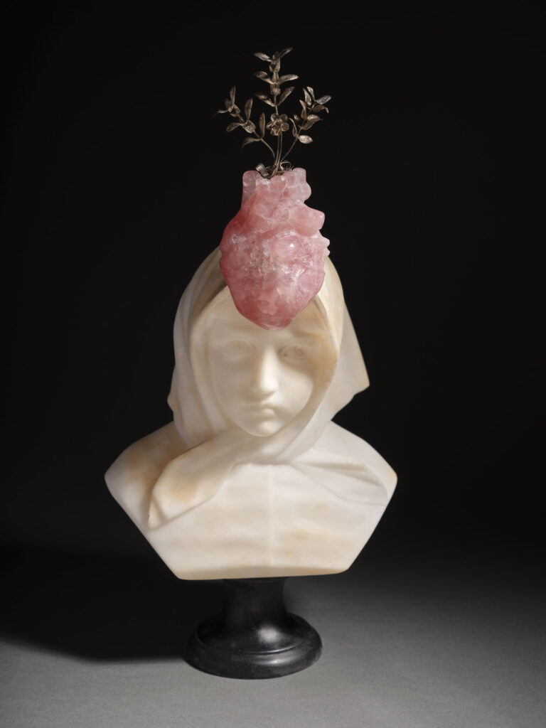 Alabaster, rose quartz, tin